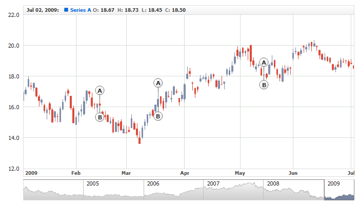 Illustration below shows event marker positioning adjustment with Candlestick series: