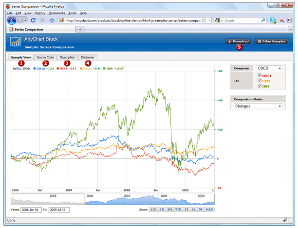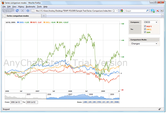 For the simplicity of understanding the functioning of the AnyChart Stock component, the documentation includes hundreds of samples of all kinds, vividly and clearly demonstrating the entire range of the component's abilities. The sections below cover different types of the samples and mechanisms for using them.