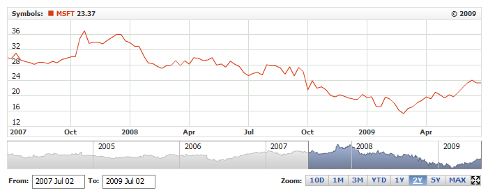 To show static text in Title or Date-Time Label just type it into <format> node, for example: <format>MSFT Corp. 2005-2008: </format>. To use special symbols please use CDATA block