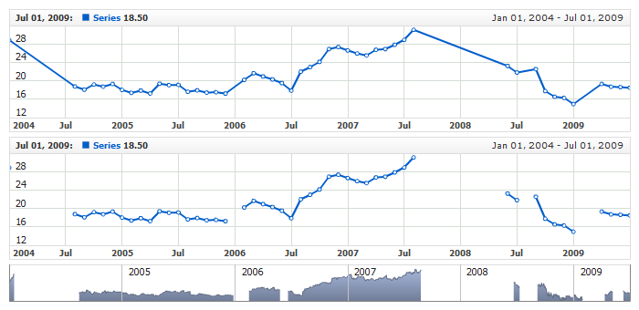 Live Sample shows two similar series: one with with connect_missing_points set to true and another - to false.