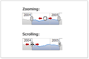 If the data set used for displaying the scroller chart contains gaps, the component shows those gaps. AnyChart Stock can fill the gaps by joining the boundary points with values. To enable such mode, use the connect_missing_points attribute in the <scroller> node.
