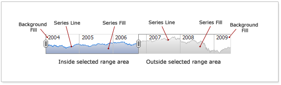 - Outside Selected Range - defines how series and fill are displayed outside of the  selected range.