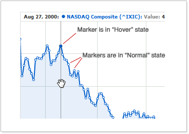 Marker can be in to states "Normal" and "Hover". "Hover" is shown when user hover over the respective value on X-Axis, in all other cases marker is shown as "Normal".