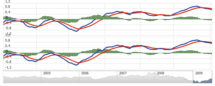 Live sample below demonstrates how to change display order of series for MACD indicator. Top chart demonstrates default order, on the bottom chart histogram series is put behind lines: