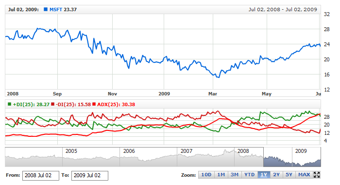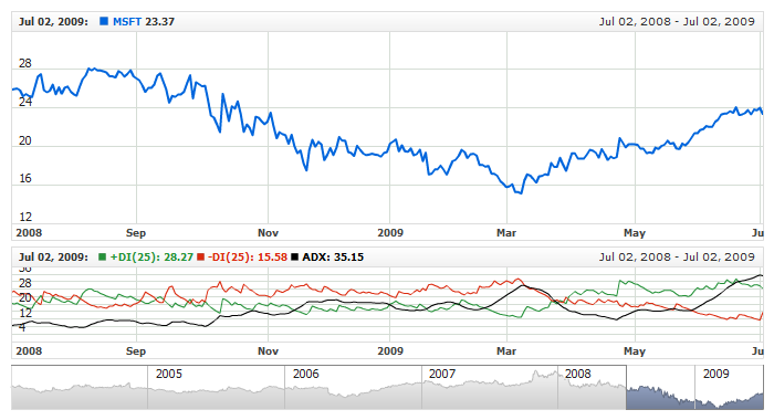 Live sample below shows DMI(25) with Wilder smoothing: