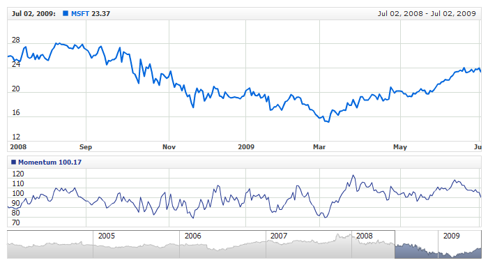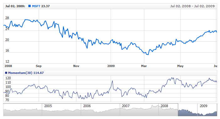 XML/JSON for Momentum declaration, note that there are two charts defined - one is used to show the stock data, and another one contains technical