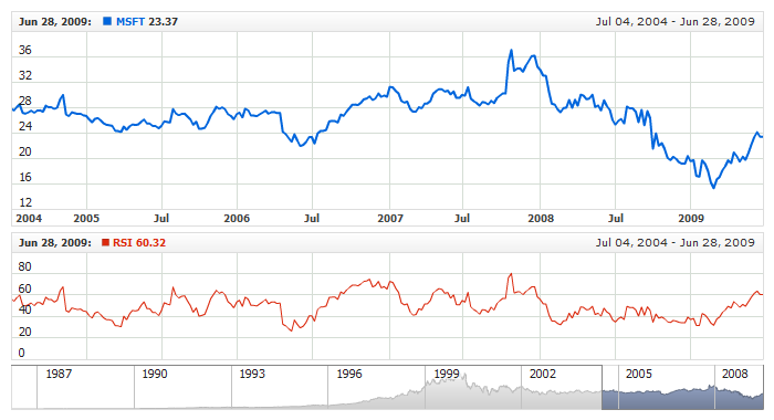 AnyChart Stock allows you to add RSI with desired period to any of your charts.