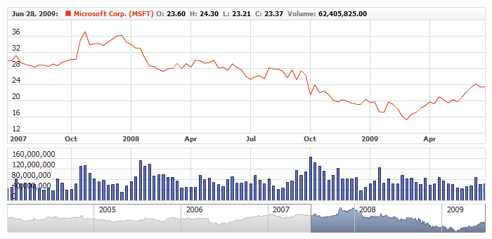 Technical indicators use the visualization options that are pretty similar to those of series. Different technical indicators are represented by the parameters that are displayed on the chart. For example, Volume+MA shows: Volume and Moving Average as Bar and Line series.