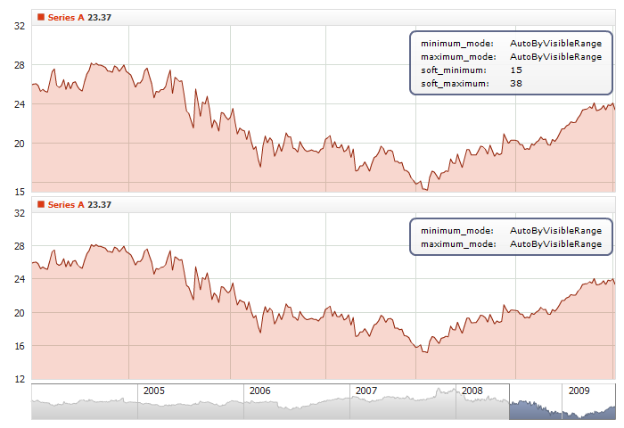 In some cases you may have no need to define solid minimum or maximum and need a scale to be autocalculated with the help of AutoByVisibleRange or AutoByAllRange modes, but at the same time you may want a scale to remain in a certain range (i.e. "never go below zero" or "never go above 100"): that's the case, when soft_maximum and soft_minimum attributes help you. You just define them along with the minumum_mode and/or maximum_mode attributes:
