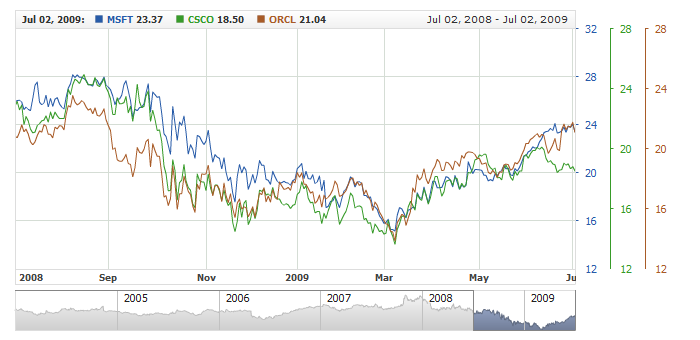 The live sample below demonstrates the most typical synchronization case: the chart has the primary and an extra axis. No series is bound to the extra one; instead, it is bound to the primary one and looks just like it:
