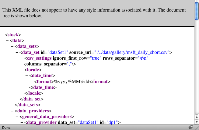 When this typo has been resolved, the browser has built a correct XML tree: