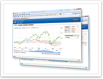 This sample application provides the ability to use technical indicators built-in to the component to analyze of one sample stock. Besides these technical analysis options, there is an option to compare different companies stock quotations using "Compare To" menu. For the ease of data representation and handling user has abilities to change series display type, switch between logarithmic and linear axis scales and display significant events on the plot.