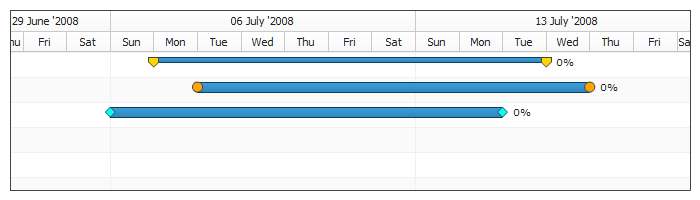 Starting and Ending Markers are preset shapes that are placed in the start and at the end of the Middle Bar. By default markers are used to distinguish regular and summary task, and to draw Milestones. When you create your own style you can use custom markers to mark special or important tasks.