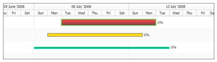 The sample below shows a project with the several tasks, each uses the style with shape type set. Fill and border settings are also demonstrated: