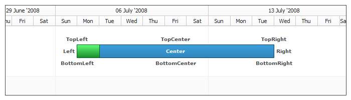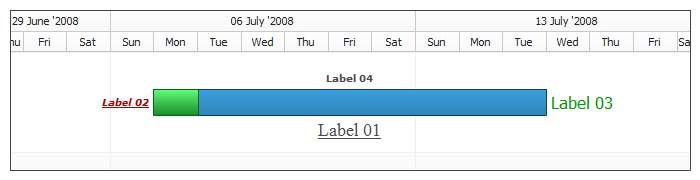 Besides visualization of Bar itself and its markers Bar Style also contains settings of labels that belong to the task or period. User can set any number of labels, and each of them can have specific font settings, text formatting, position of anchor relative to the bar and alignment relative to binding anchor.