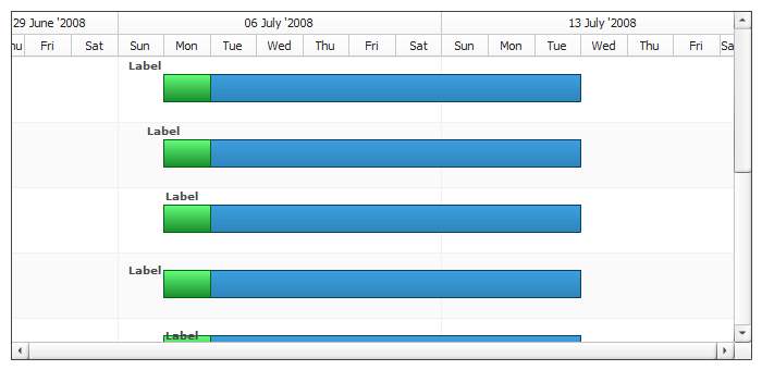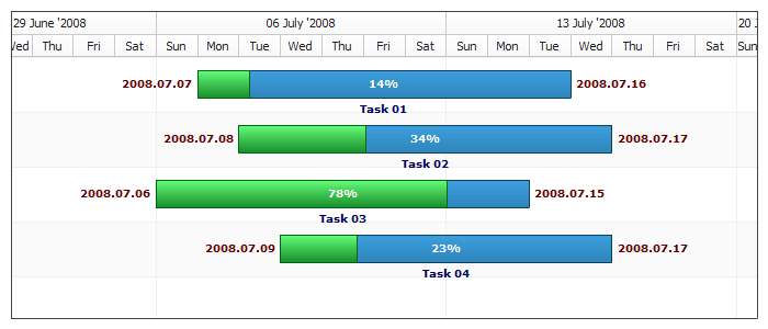 As you can see from the example, the syntax of labels settings is very simple. By default task style contains some pre-defined labels, but when you apply your own style and add labels node in bar_style node, all default settings are reset, and new ones are used. In the example below we've added one new label. XML syntax for it is the following: