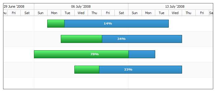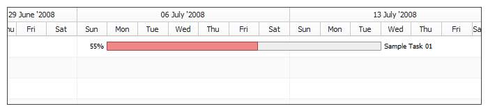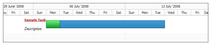 Above you can see the Task Style named simpleTaskStyle and it is applied to the only task in this project using style attribute of <task> node. Bar Style is used twice - to configure actual task state (<actual> node) and task progress (<progress> node).