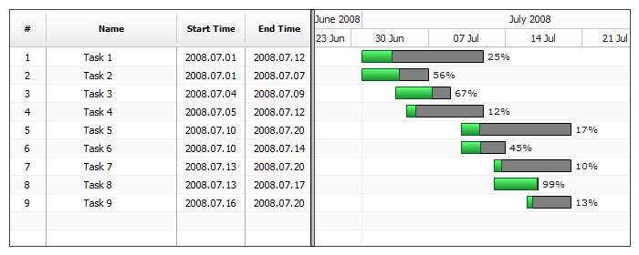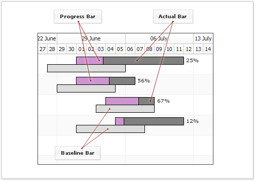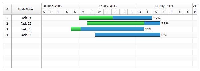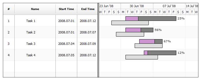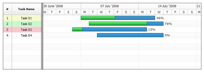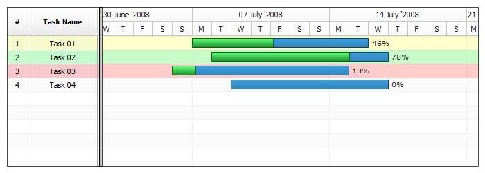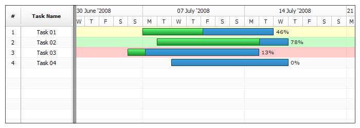 Sample below shows custom datagrid plot fill for three tasks and default settings for the fourth: