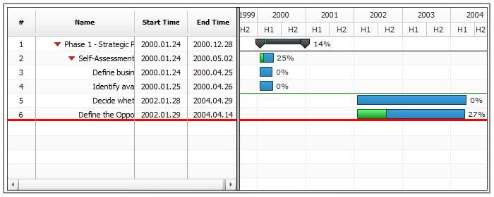 Splitter can be placed above or below the task, you have to set position attribute to "Top" or "Bottom" to change this. Splitter is a simple line, so you can set its thickness and color. Here is a sample of a chart where some tasks have splitters: